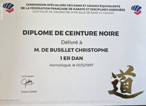 Christophe de Busillet commence le karaté à l’âge de 11 ans, puis s’oriente vers la boxe française à14 ans, discipline dans laquelle il devient rapidement champion de France Minimes et meilleur technicien de la compétition. Depuis son plus jeune, il s’entraîne avec rigueur et passion, tant et si bien qu’il obtient son premier diplôme d’enseignant à seulement 18 ans.
